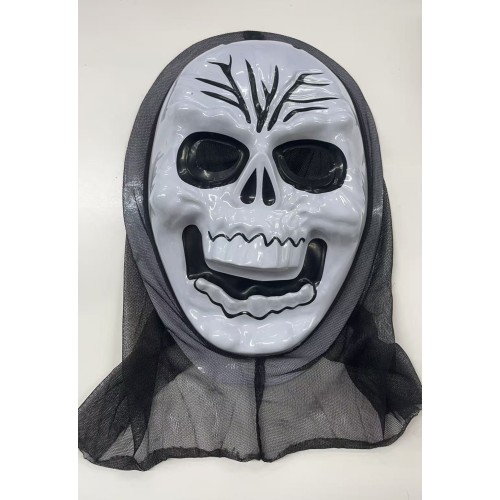 White skull face with a black mesh hood